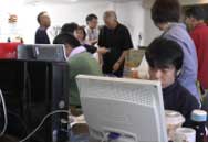 現在、うきは市の道の駅観光案内所において観光案内の訓練を行う